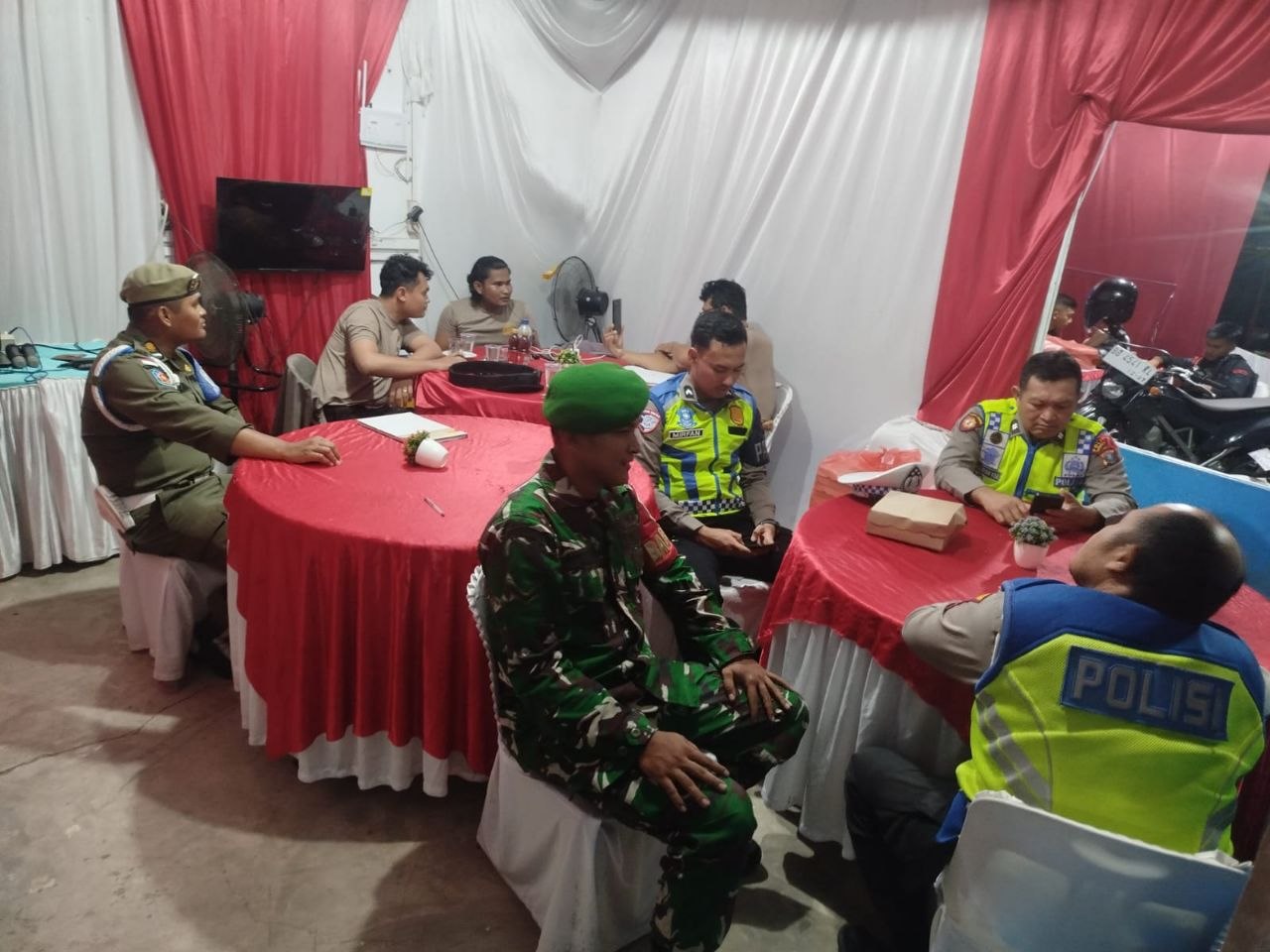 Di Pos Pengamanan Parsarian saat ini nampak personel dari Koramil dan Polres serta Dinas Perhubungan masih tetap bersiaga di Pos Pam Hari Raya Idul Fitri 1447 Hijriah malam hari ini, Senin (24/03/2026).