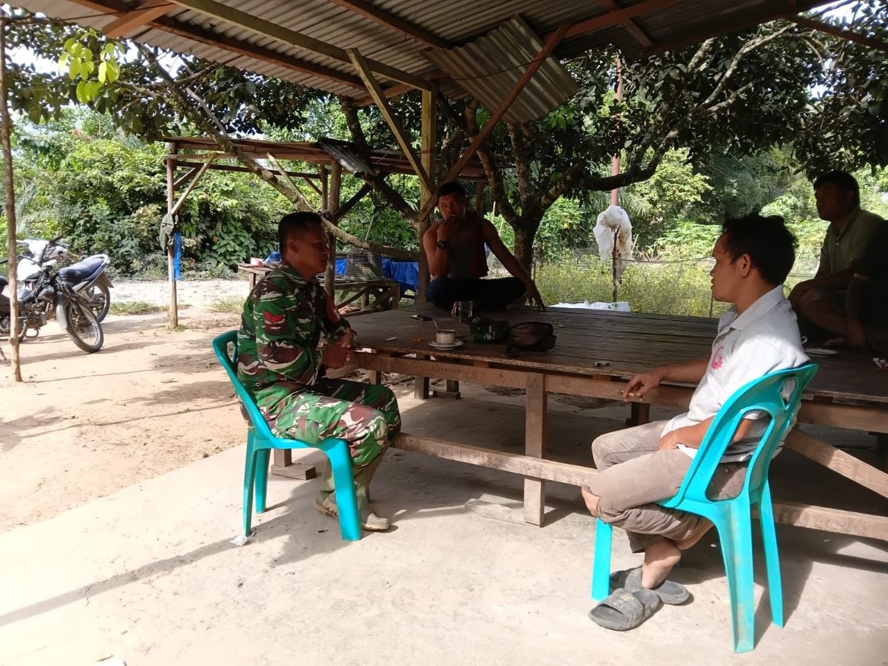 Aek Nabara Barumun - Kegiatan Komunikasi Sosial (Komsos) kembali dilakukan oleh Babinsa Koramil 10/Barteng Kodim 0212/Tapsel sebagai bentuk upaya dalam menjalin kedekatan terhadap warga desa binaan di wilayah teritorialnya